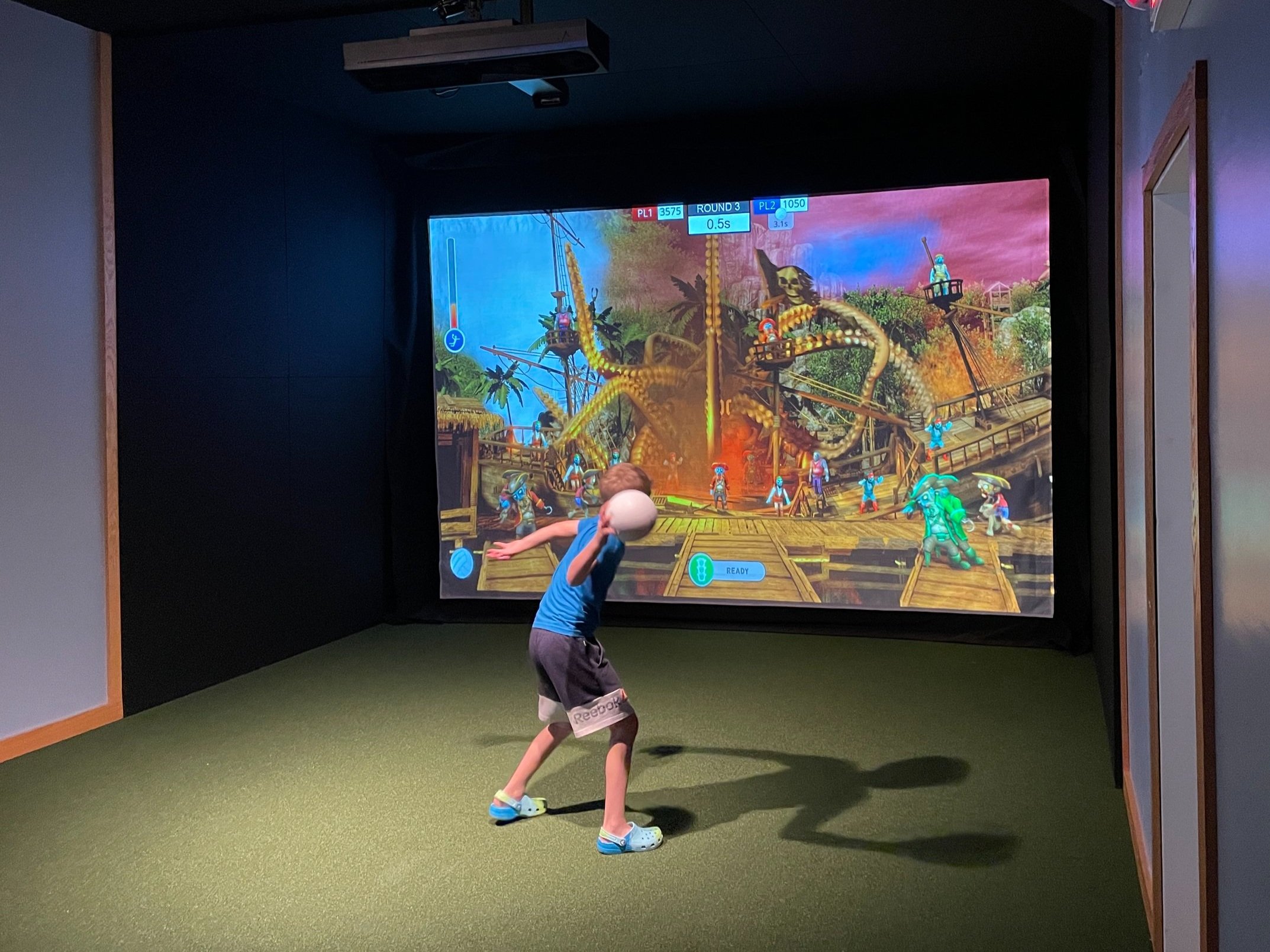The Game Simulator has fun, interactive games that players of all ages enjoy. Face off in multi-player soccer golf, beat the high score in a wild west shootout, or defeat the pirate zombies in dodgeball. Play with friends or book the party package for your next special event!